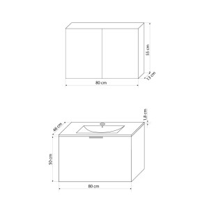 moderne Badezimmermöbel Weiß MDF bestehend aus Spiegelschrank, Waschtisch mit Waschbecken 80cm