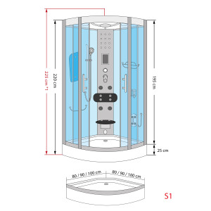 Dampfdusche Duschkabine D46-53T3-ALL 90x90 cm