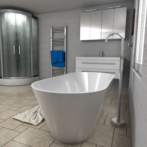 SeniorBad GmbH präsentiert diese, speziell für die Hausmarke AcquaVapore entwickelte, freistehende Badewanne die aus gehärtetem Sanitäracryl auf einem galvanisierten Stahlrahmen hergestellt wird. Die Wanne bietet mit ihrer Größe von 170x80x58cm und ihrer ergonomischen Form den idealen Platz zur Entspannung. Dank der höhenverstellbaren Füße der Wanne, kann man diese nahezu an jedem Ort aufstellen. Die rundherum / allseitig geschlossene Wanne kann völlig frei im Raum aufgestellt werden. Diese formschöne, haltbare Badewanne hat ein hervorragendem Preis-/Leistungsverhältnis!